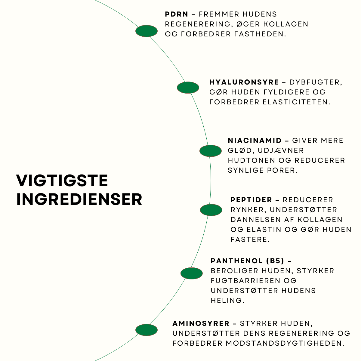 Fylder huden og aktiverer den naturlige kollagenproduktion for at reducere fine linjer.
